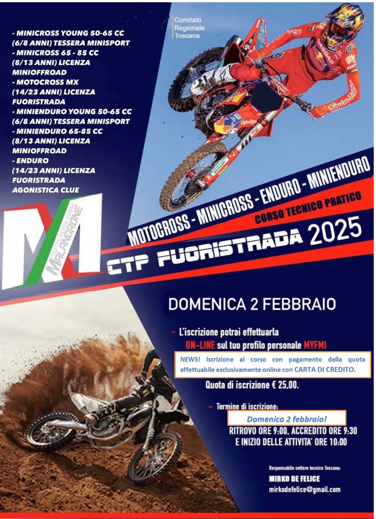 TERMINE ISCRIZIONE DOMENICA 2 FEBBRAIO o al raggiungimento del numero massimo di iscritti.