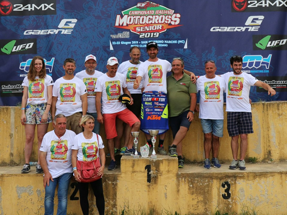 Ormai siamo al giro di boa per tanti campionati ed in alcuni casi siamo già arrivati all’assegnazione dei titoli, come è successo domenica scorsa a San Severino Marche dove il portacolori dell’ A.M. Aretina Fabio Occhiolini (nella foto con i suoi supporter ed il promoter Roberto Bianchini) si è laureato tra primi campioni dell’italiano Senior 2019, portando a cinque il numero dei titoli consecutivi tra gli Over 40. La penultima prova di San Severino Marche ha assegnato in anticipo la metà dei titoli in palio, senza però risparmiare i colpi di scena e lo spettacolo a cui il classico tracciato settempedano ha abituato il pubblico ormai da decenni.