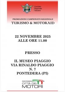 CON GRANDE PIACERE SIAMO AD INVITARVI ALLA PREMIAZIONE DEI CAMPIONI REGIOANLI TURISIMO E MOTORAID 2025
