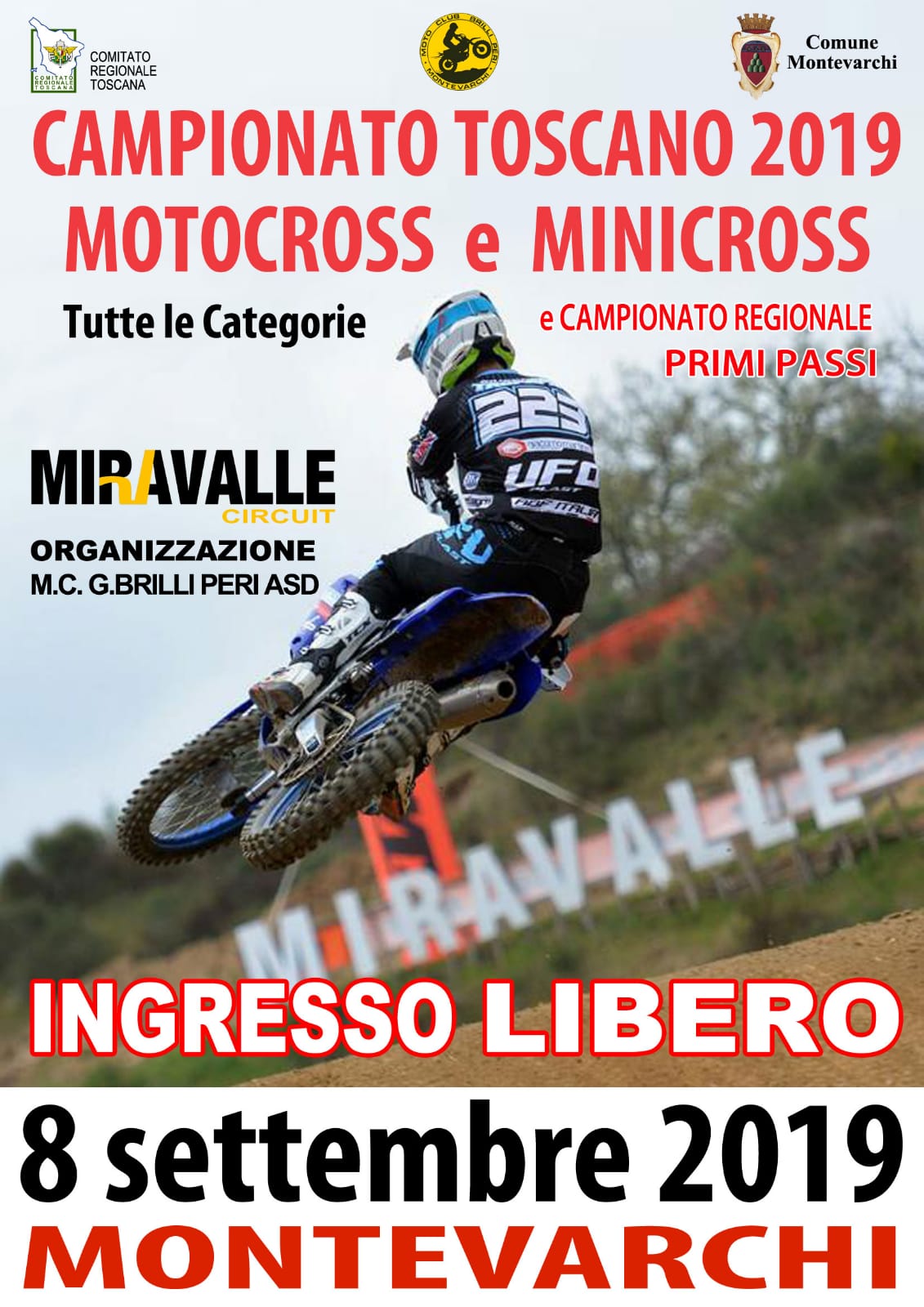 Si comunica che sul portale Sigma Federmoto è possibile iscriversi alla gara di campionato regionale toscano motocross che si svolgerà al “Miravalle” di Montevarchi il prossimo 8 settembre 2019, sotto la regia del Motoclub Brilli Peri